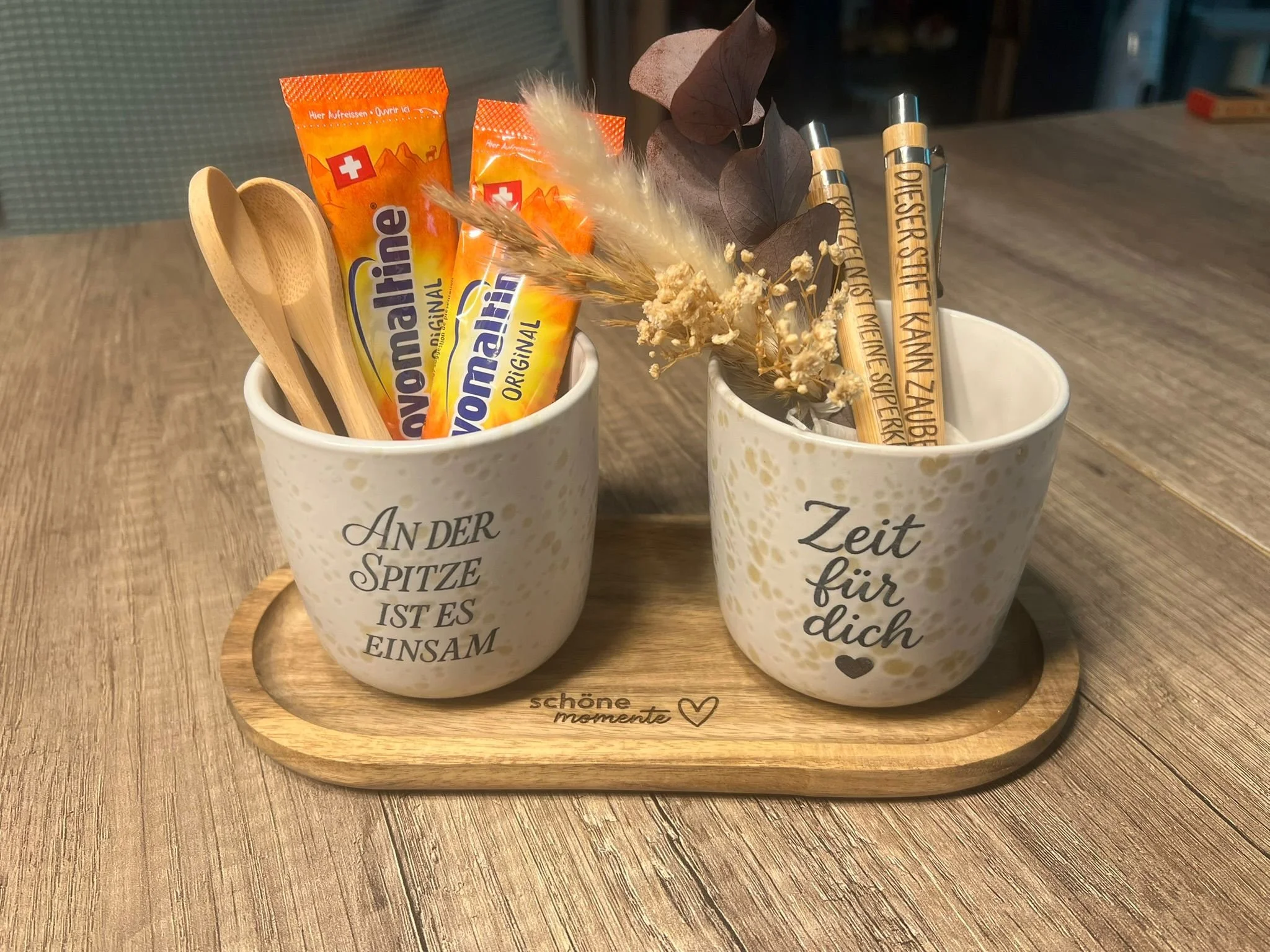 Ein Geschenk, so einzigartig wie der Mensch, für den es gedacht ist. Mit Namen, Daten oder persönlichen Botschaften wird aus Holz oder anderen Materialien ein echtes Erinnerungsstück. Perfekt, um besonderen Momenten eine ganz persönliche Note zu geben.